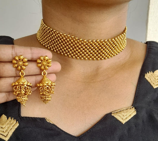 Antique gold tone Choker Necklace Set dj-05379