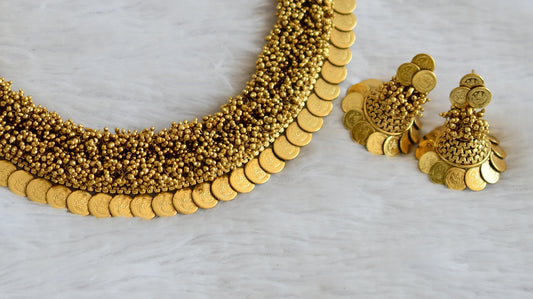 Antique Gold Cluster Lakshmi Coin Necklace Set dj-05488
