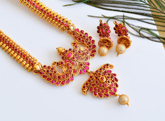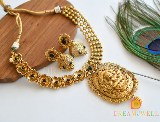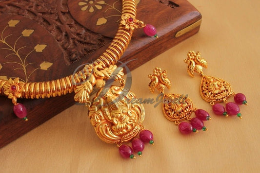 Antique gold tone Ruby Lakshmi Necklace Set -dj05482