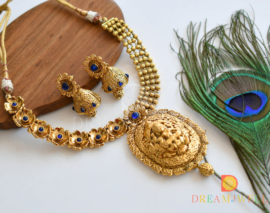 Antique gold tone Blue Lakshmi Necklace Set dj-05412