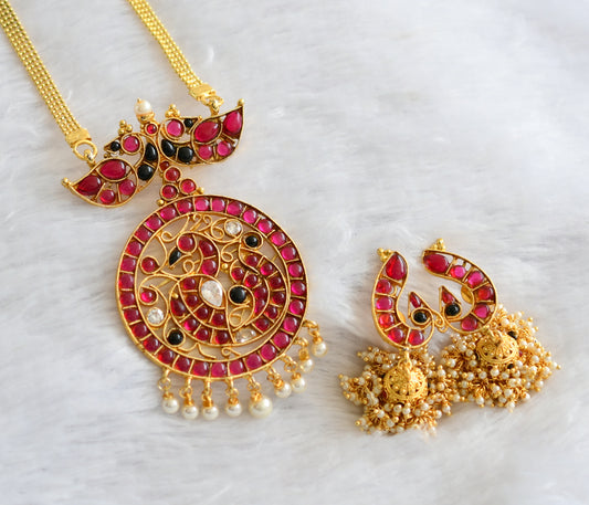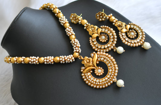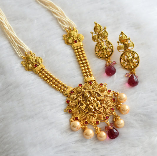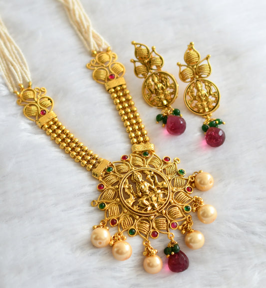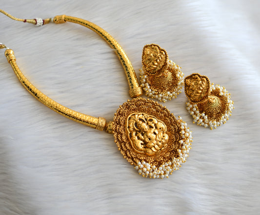 Antique gold tone lakshmi pearl cluster Kante necklace set dj-04035