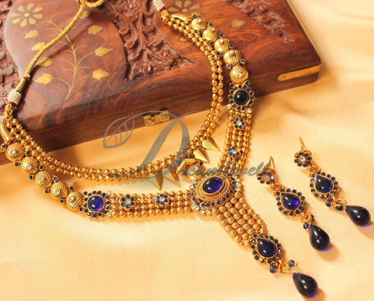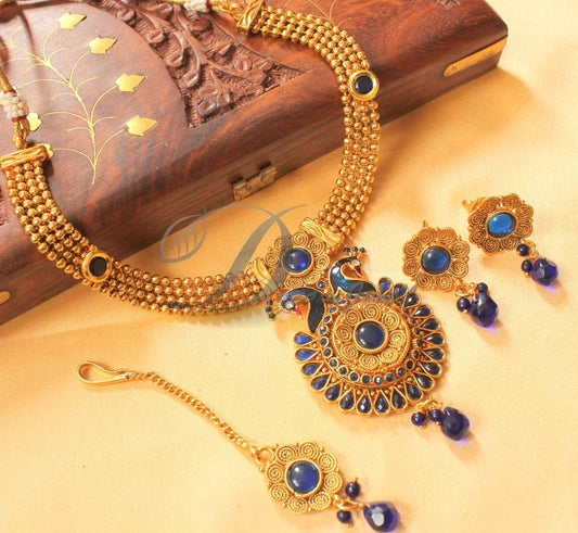 Antique gold tone Blue Peacock Necklace Set-dj04179