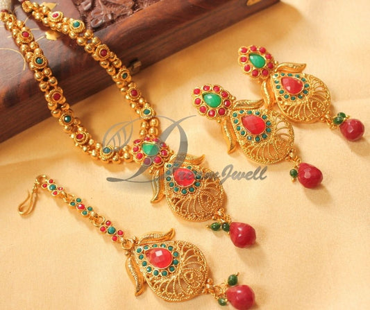 Antique gold tone Multicolour Designer Necklace Set-dj04177