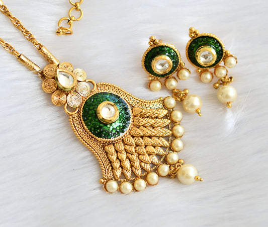Antique gold tone pink-green peacock hasli necklace set dj-02674