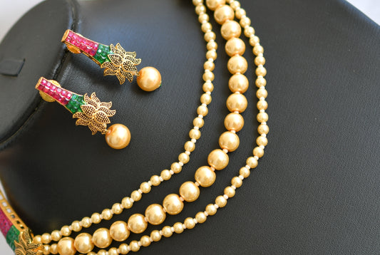 Antique gold pink-green Lakshmi pearl cluster necklace set dj-04986