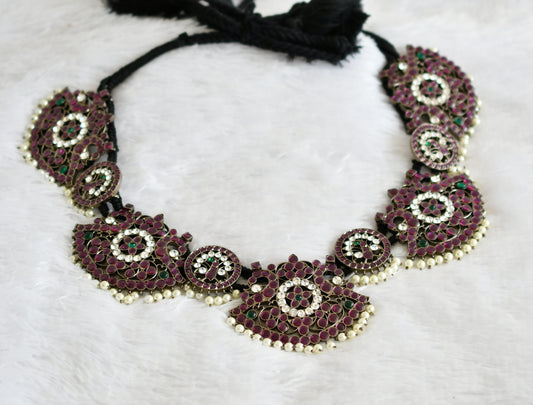 Black finish precious kemp pearl Kalinga Narthana Krishna mango necklace dj-52513