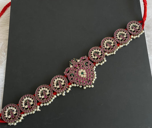 Silver tone precious kemp-green white pearl mango peacock haar Dj-52529