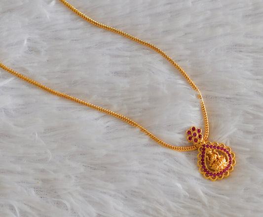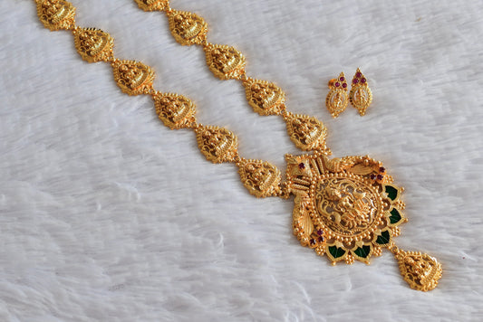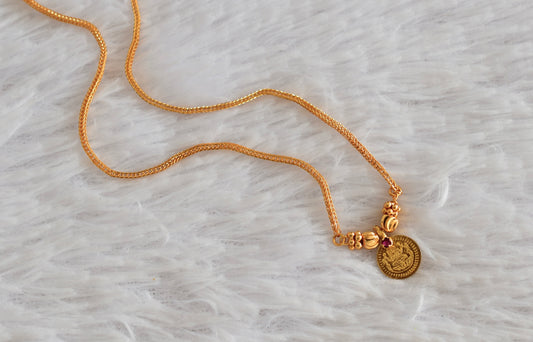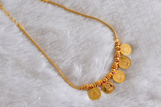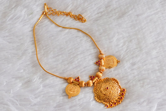 Gold tone AD pink lakshmi coin necklace dj-51845