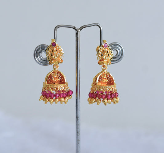 Gold tone kerala style pink lakshmi jhumkka dj-51806