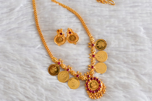 Gold tone pink stone lakshmi coin necklace set dj-51908