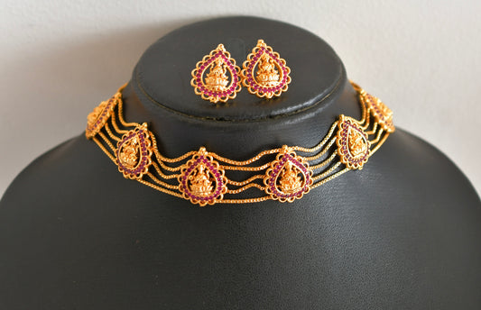 Gold tone AD pink lakshmi choker necklace set dj-51847