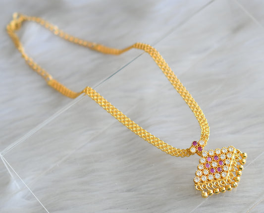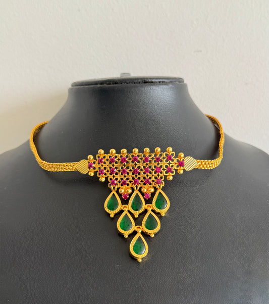 Gold tone Kerala style Pink-Green stone kodi necklace dj-43051