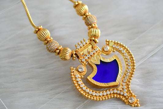 Gold tone Kerala style Blue palakka kodi necklace dj-43052
