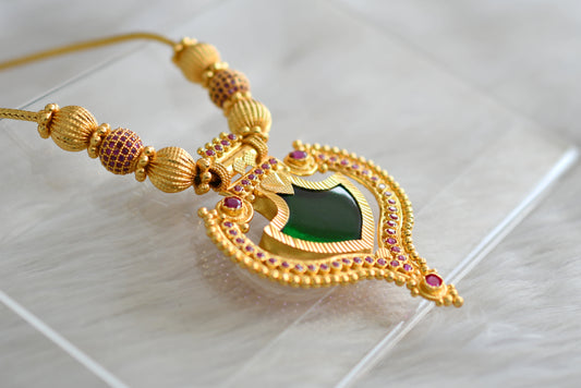 Gold tone Kerala style Pink-green palakka kodi necklace dj-43054