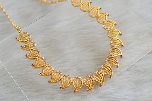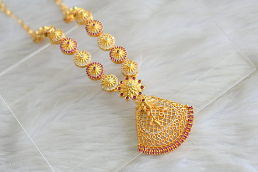 Gold tone Kerala style Red palakka kodi necklace dj-43053