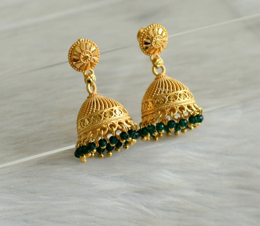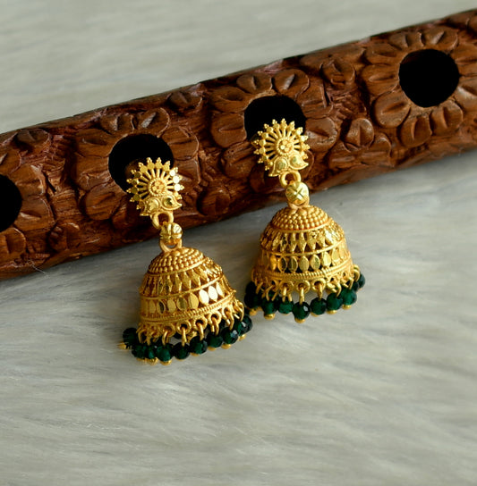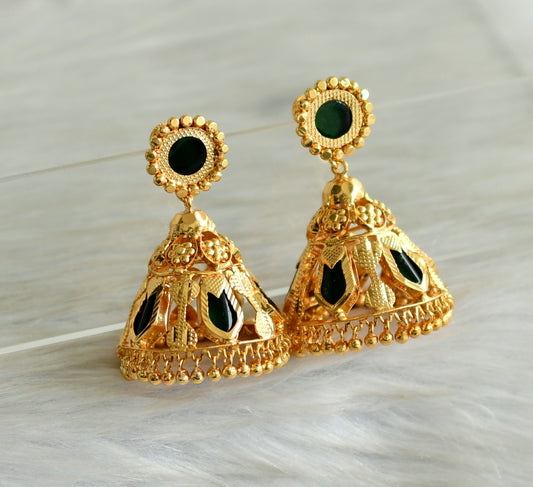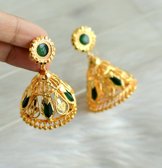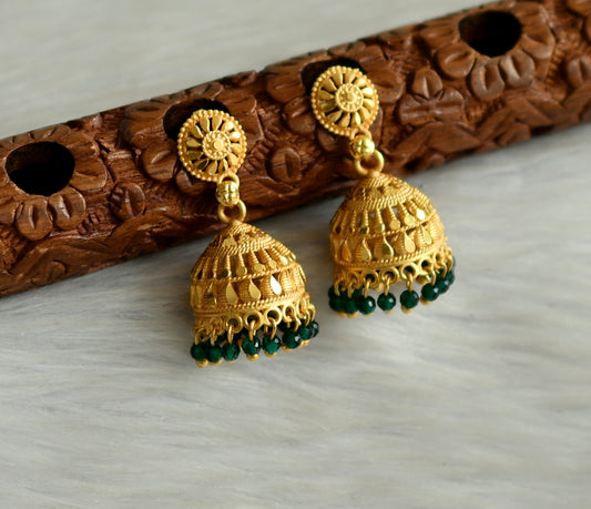 matte gold tone kerala style green cluster jhumkka dj-42918