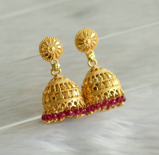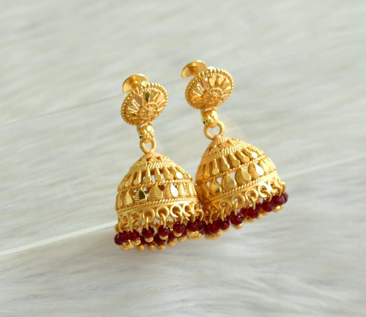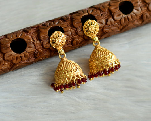 Matte gold tone kerala style maroon cluster jhumkka dj-42937