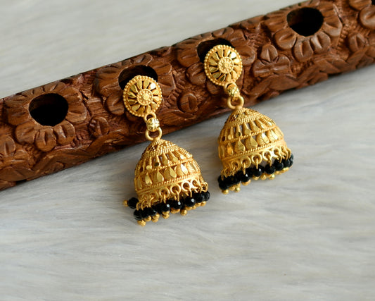 Matte gold tone kerala style black cluster jhumkka dj-42915