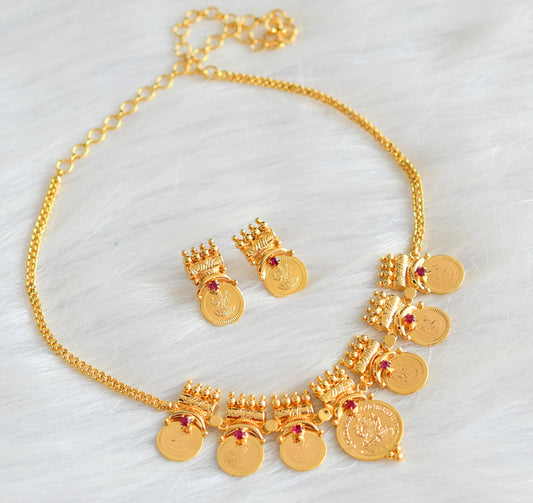 Gold tone Kerala style pink Lakhsmi coin necklace set dj-42985