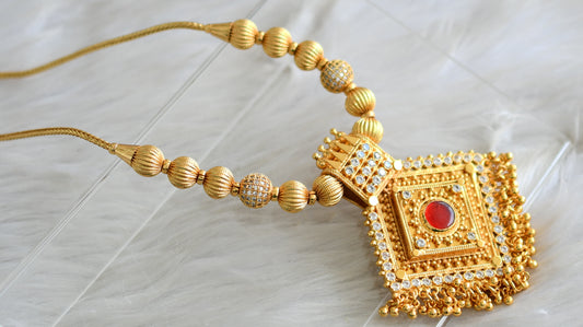 Gold tone Kerala style Red stone kodi necklace dj-43049