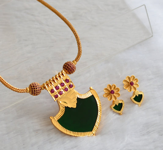 Gold tone pink-green palakka kodi necklace set dj-42986
