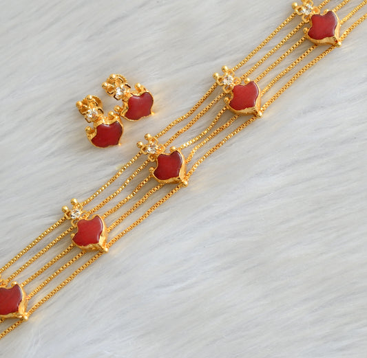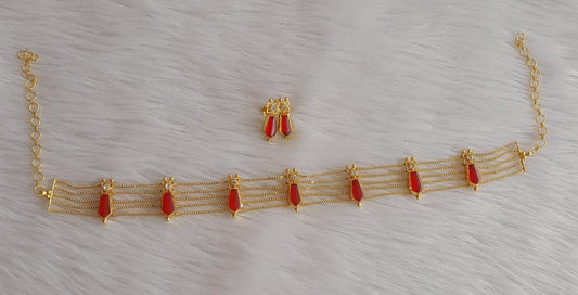 Gold tone red palakka Kerala style choker necklace set dj-42068