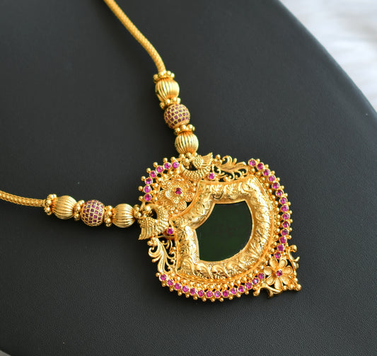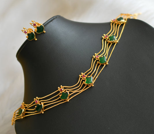 Gold tone ruby stone green palakka Kerala style kodi necklace dj-42083