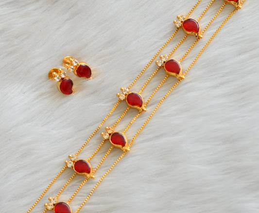Gold tone white stone red palakka Kerala style kodi necklace dj-42081