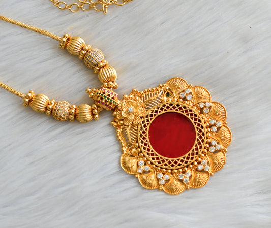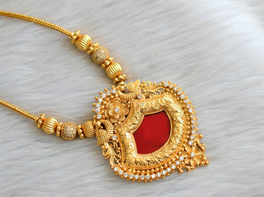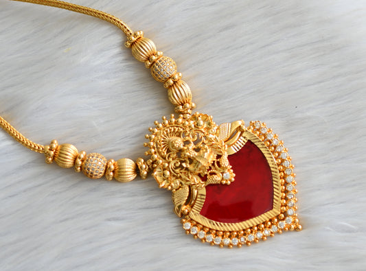 Gold tone white stone red round Kerala style kodi necklace dj-42123