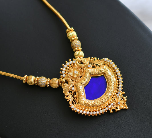 Gold tone white stone blue palakka Kerala style kodi necklace dj-42082