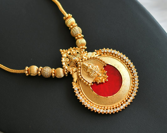 Gold tone white stone red round Lakshmi Kerala style kodi necklace dj-42087