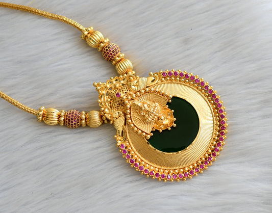 Gold tone ruby stone green round Lakshmi Kerala style kodi necklace dj-42088