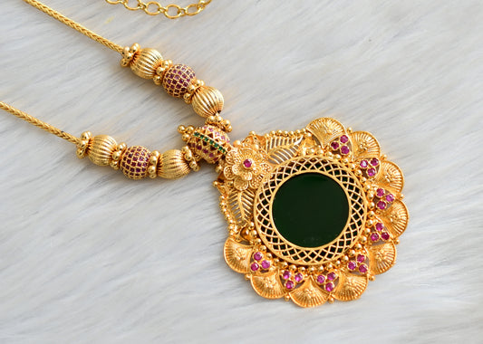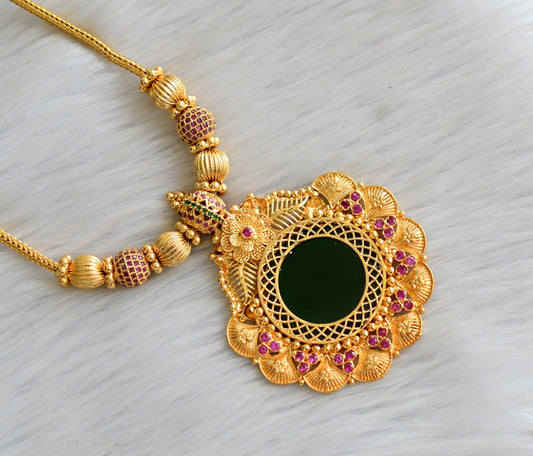 Gold tone ruby stone round green Kerala style kodi necklace dj-42090
