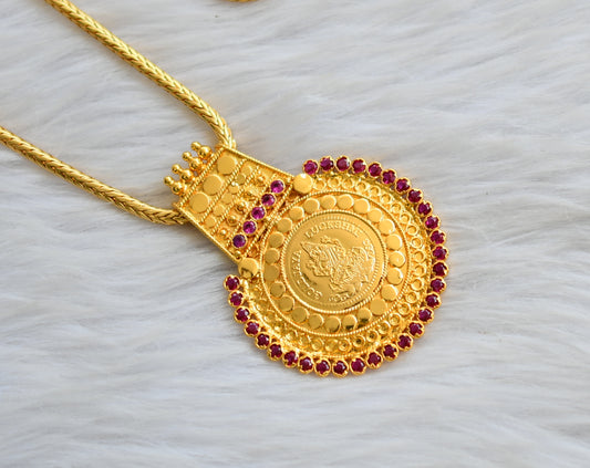 Gold tone ruby stone Kerala style Lakshmi pendant with mugappu chain dj-42077