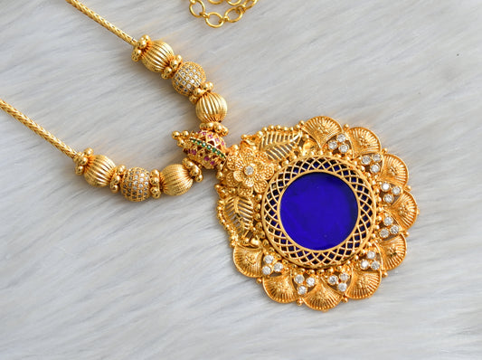 Gold tone white stone blue round Kerala style kodi necklace dj-42124