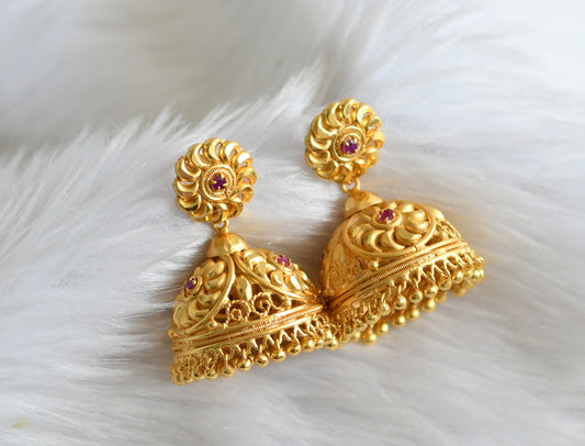 Gold tone pink Kerala style big flower jhumkka dj-41773