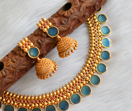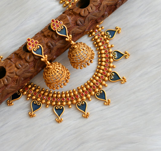 Matte finish red-blue round Kerala style necklace set dj-41596