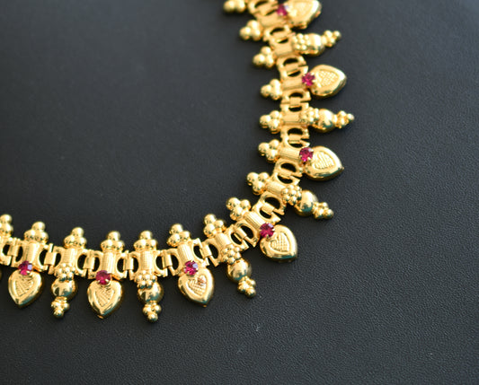 Gold tone pink stone heart Kerala style necklace dj-41924