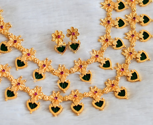 Matte finish red-green palakka Kerala style necklace set dj-41602