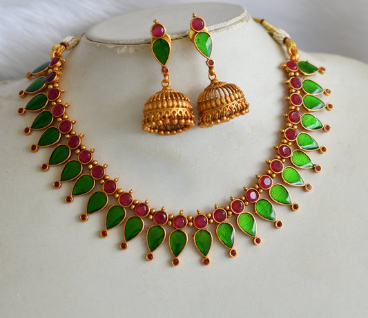 Matte finish red-green Kerala style Gopi necklace set dj-38094