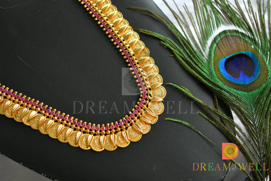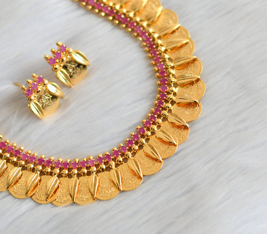 Gold tone pink stone leaf Lakshmi coin haar dj-37768