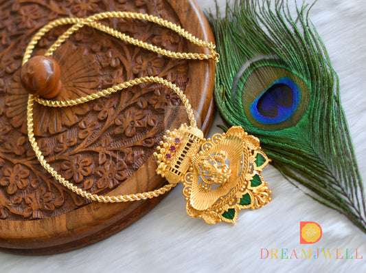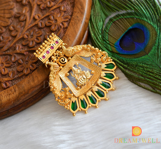 Gold tone pink-green palakka Lakshmi Kerala style pendant with chain dj-38060