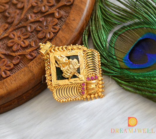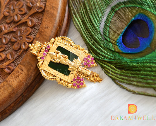 Gold tone pink stone green nagapadam Lakshmi Kerala style pendant dj-37893