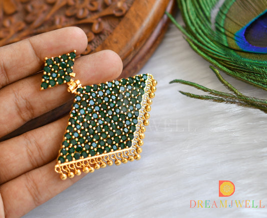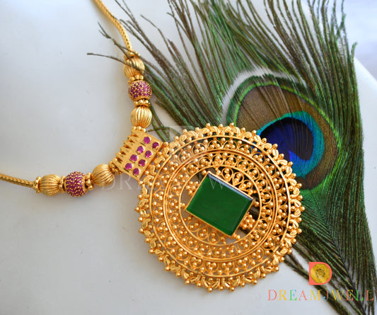 Gold tone green big block stone round pendant Kerala style necklace dj-38102