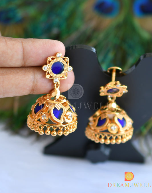 Gold tone mango blue 5 petal Kerala style jhumkka dj-38049