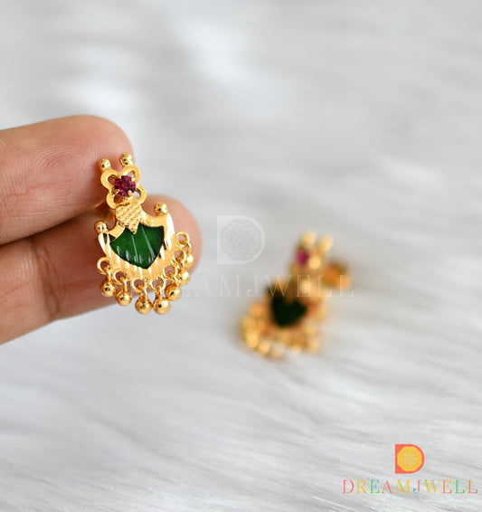Gold tone pink-green palakka Kerala style necklace set dj-38098