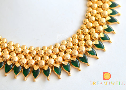 Gold replica Gopi shape green Kerala style necklace dj-36397
