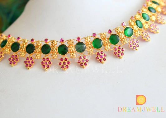 Gold tone AD pink stone green round Kerala style choker necklace dj-36398