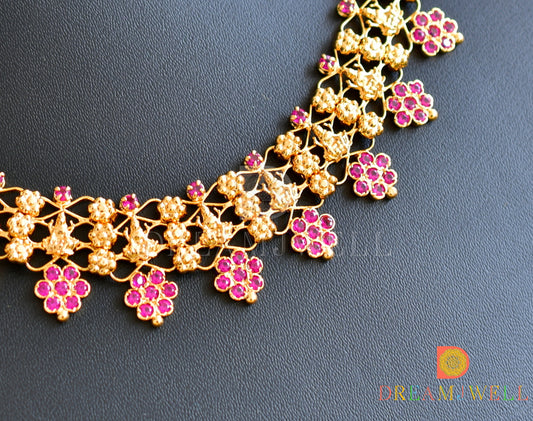 Gold tone Red Nagapadam Kerala style kodi necklace dj-36415