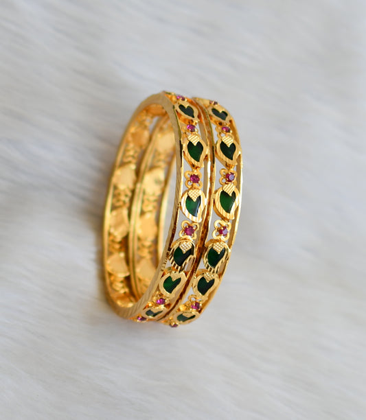 Gold tone Kerala style pink-green mango bangles(2.10) dj-25729